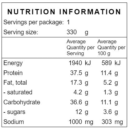 Calories: 463 | Protein: 37.5g | 17.3g | Fats 17.3g | Carbs: 36.6g
