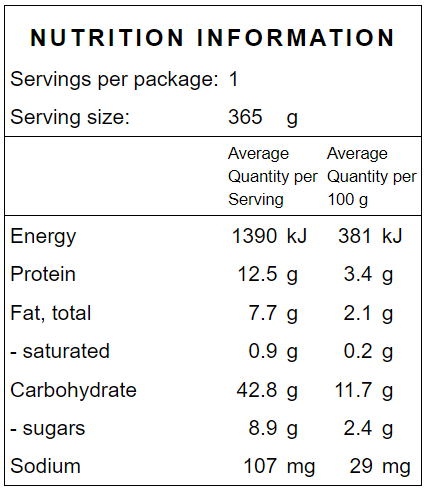 Calories: 332 | Protein: 12.2g | Carbs: 42.8g | Fats: 7.9g | Approx Weight: 350